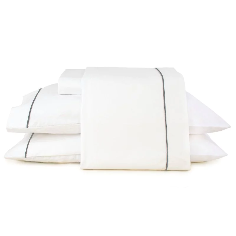 Jogo de Lençol Queen Percal 100% Algodão 4 pçs 180 fios Branco Vivo Cinza Saluzzo